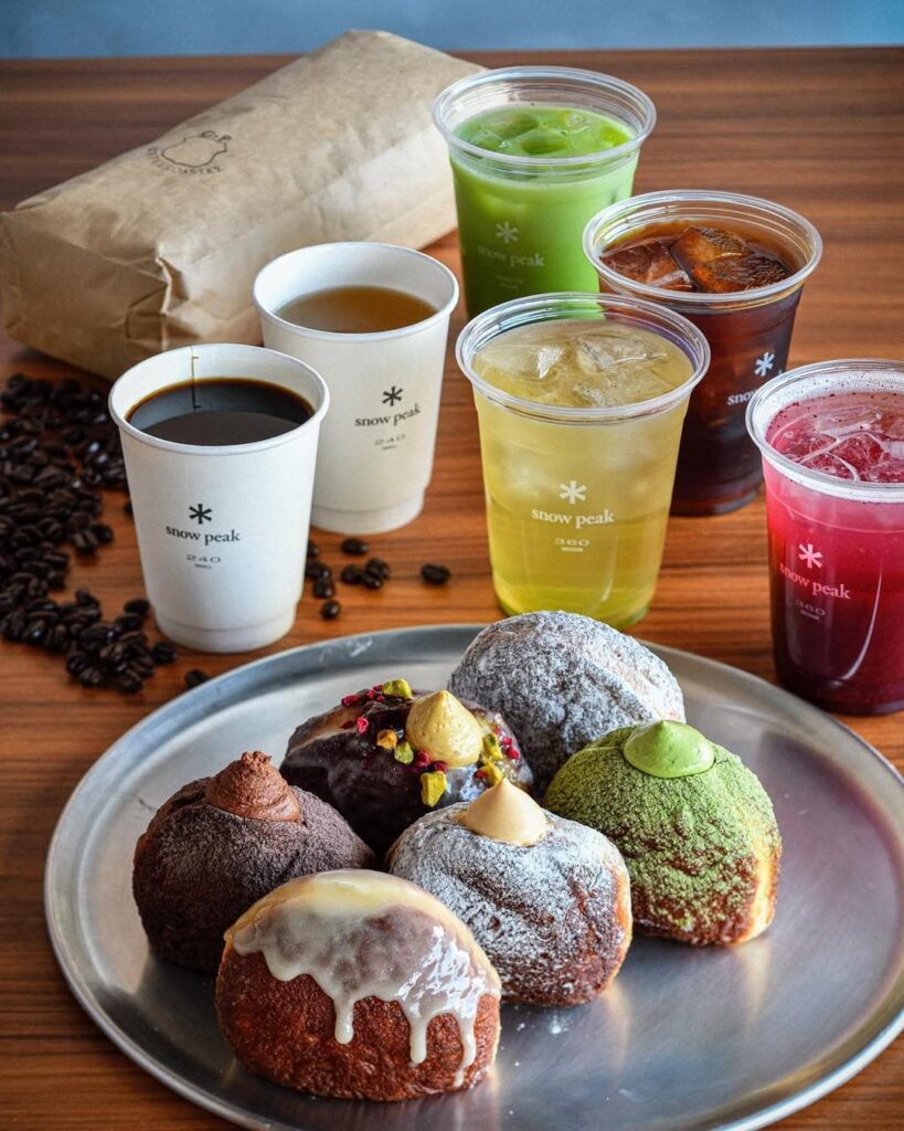 キャンプブランド「snow peak」が手がける話題のカフェで、雪室熟成小麦を使った生ドーナツや、こだわりのプレミアムコーヒーを楽しめます。