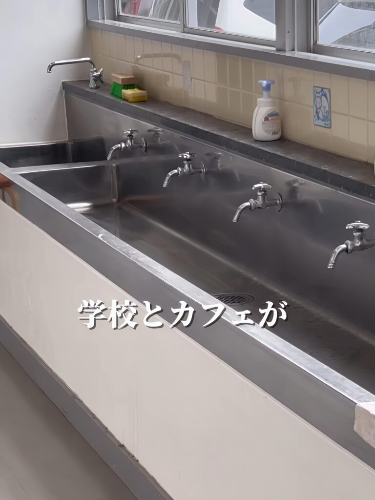廊下の窓や黒板、手洗い場など、当時の面影を残したままの店内は、どこか懐かしい雰囲気です。