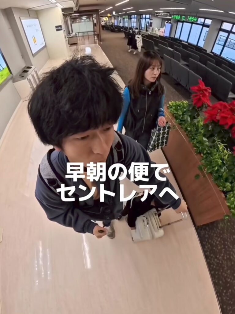 まだ少し眠そうな顔をしながらも、キャリーケースを転がすいつもの感じに、旅のスイッチが入ります♪